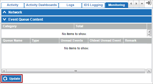 The information retrieved via Update is displayed summarily and for individual event queues.
