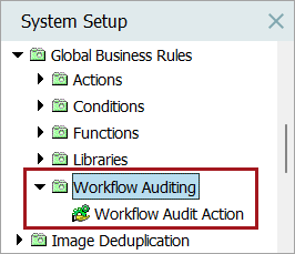 Note: If a business action with the ID 'AuditMessaging.WorkflowAuditAction' already exists on your system, the action will not be moved to the 'Workflow Auditing' subfolder upon installation of the Audit Message Framework. The action will be kept where it is.