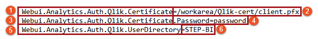 - The application server path to where the certificate is posted ('/workarea/Qlik-cert/'), followed by the file name of the certificate ('client.pfx')