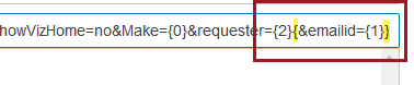 In the example below, the Tableau field 'Make' is mapped to placeholder {0}, Tableau field 'requester' is mapped to placeholder {2}, and Tableau field 'emailed' is mapped to placeholder {1}.