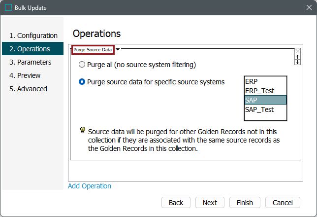 1. From the Operations dropdown, select Merge Golden Records and then Purge Source Data.