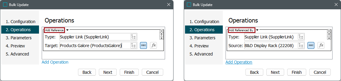 Add Reference and Add Referenced By have similar configurations for bulk updates.