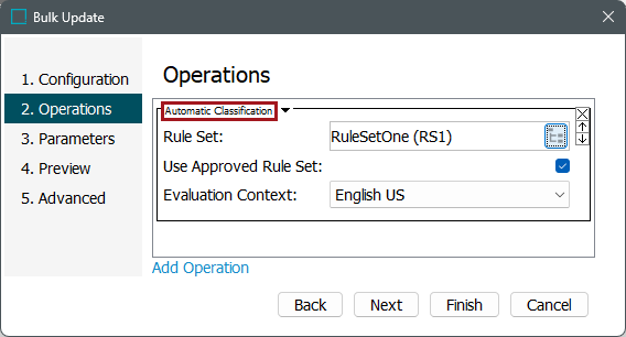 This operation can also be run via the business rules functionality, as described in the Business Action: Automatic Classification topic in the Business Rules documentation.