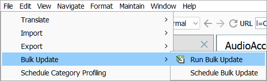 Use one of the following methods to select data to be updated and launch the Bulk Update wizard.