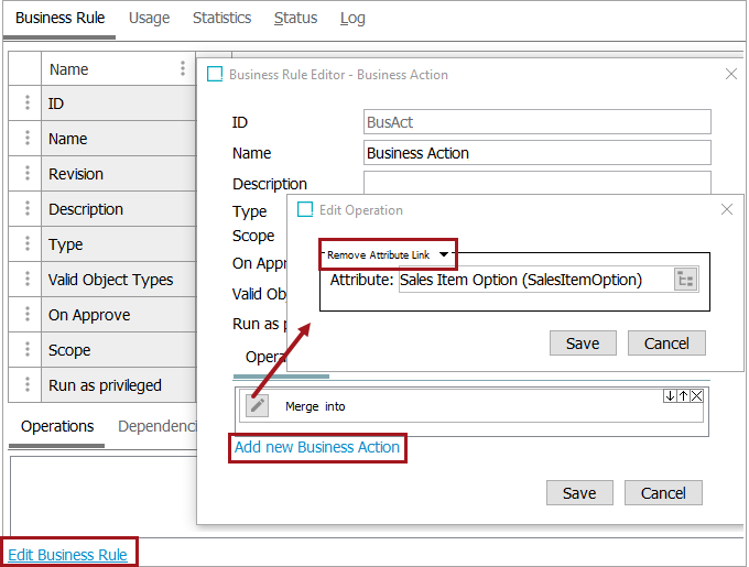 Business Action: Remove Attribute Link