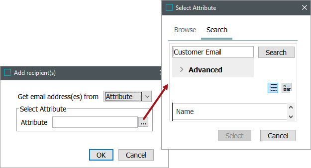 ) to display the Select Attribute dialog. Select an email attribute, and click the Select button.