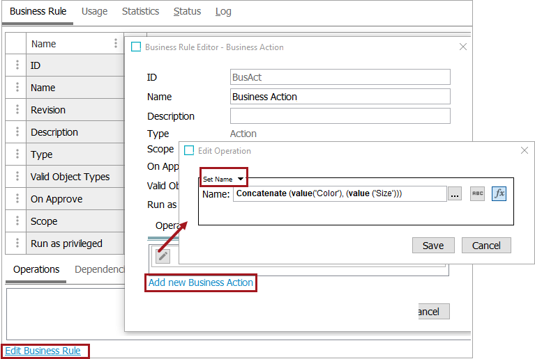 1. Click the Save button to add the operation to the business rule editor.