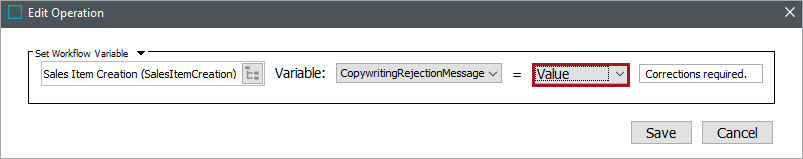 1. On the Edit Operation dialog, select the Set Workflow Variable option from the dropdown.