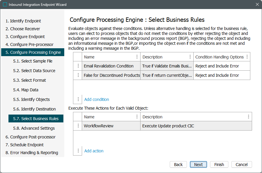 Business rules are configured for the STEP Importer processing engine, on the Select Business Rules step of the IIEP wizard. The selected business rules can be modified by editing the IIEP configuration. For more information, refer to the IIEP - Configure Processing Engine topic in the Data Exchange documentation.