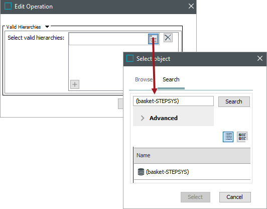 ) to display the Select Object dialog. Use the Browse or Search tab to identify the relevant hierarchy. Click Select to display the hierarchy in the Select valid hierarchies list.