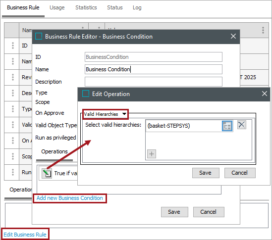 - On the Edit Operation dialog, select Valid Hierarchies from the dropdown.
