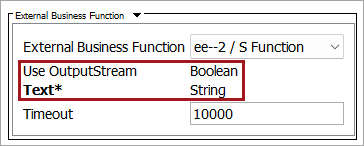 The following example includes an External Business Function with parameters defined in the extension service.