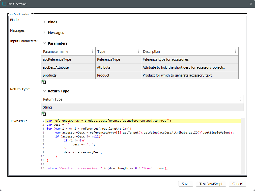 5. JavaScript - add function logic. In this example, the values of attributes on referenced objects is returned. The full code used for this functionality is: