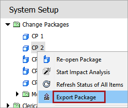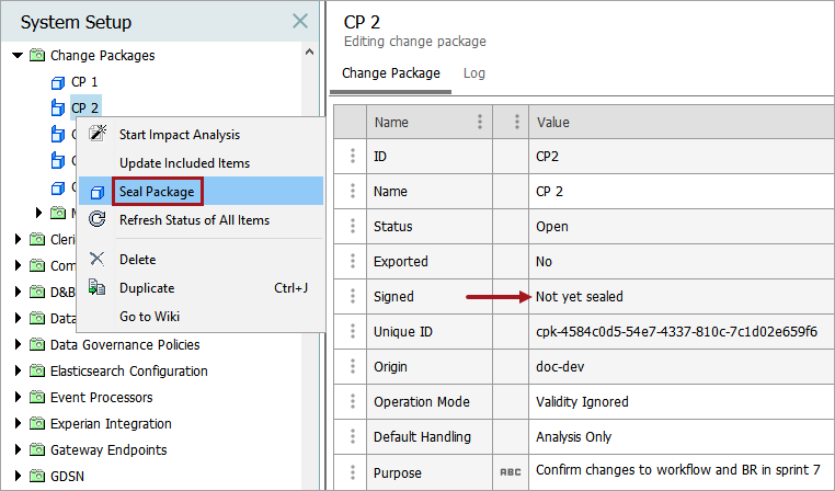 When the contents of a change package have been confirmed, it is sealed to indicate that no further edits can be made and that the package is ready for export.