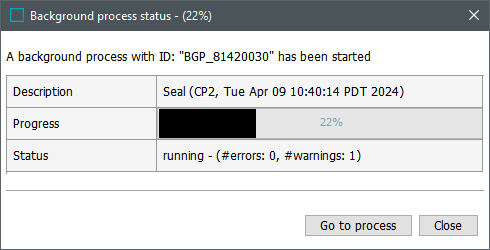 Optionally, click the Go to process button to monitor the progress of the BGP or click Close to remain on the change package.