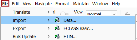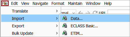 Launch the STEP Workbench for the target system, from the File menu select Import and then select Data….
