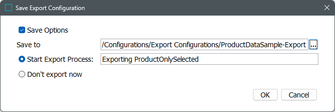 Select the Save Options checkbox to save the configuration changes for later use and click OK to start the export process.