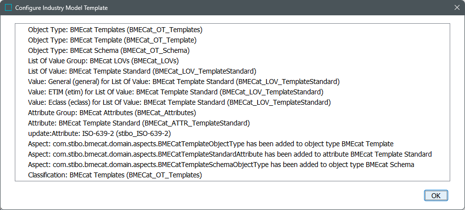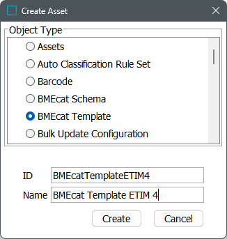 Select the BMEcat Template for the Object Type, and give an ID and Name to the template being created. Click Create.