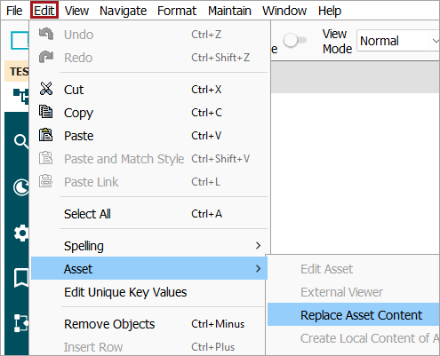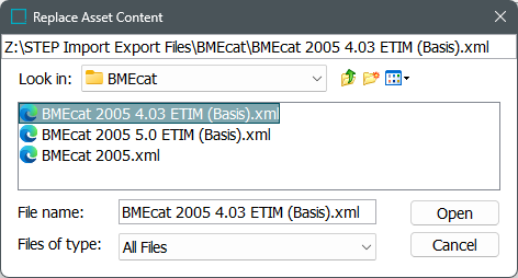 Select the BMEcat Template, click Edit > Asset > Replace Asset Content to add content.