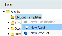 Right-click the BMEcat Templates folder and select New Asset to upload templates.