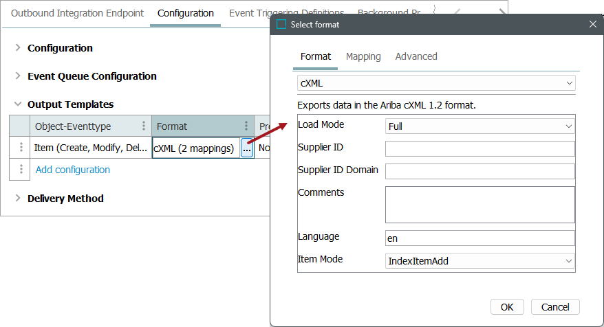 cXML is available for selection in: