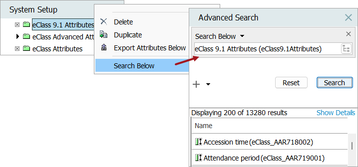 - eClass [version number] Attributes - specification attributes applicable to the named version. When multiple ECLASS versions are imported, multiple eClass [version number] Attributes groups are created.