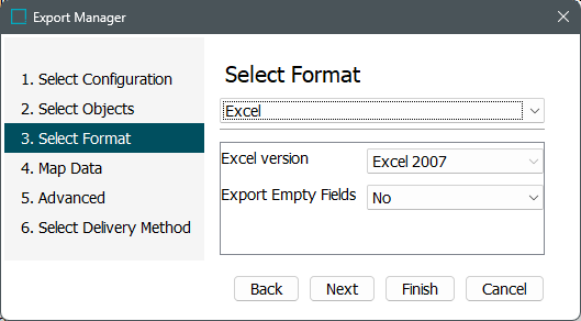 The following parameters are available when choosing the format 'Excel' in the Export Manager: