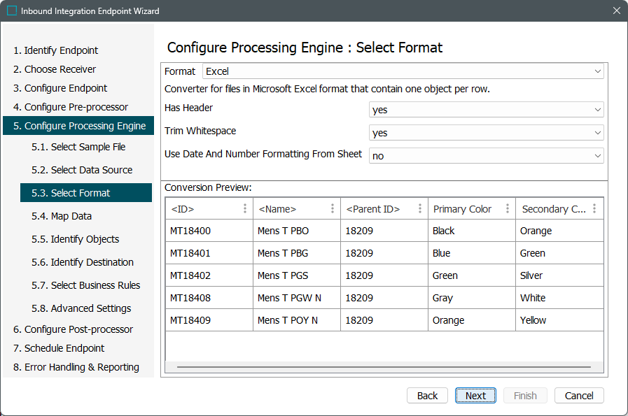 This format requires creating a data map between STEP and the data being processed, and may also include data transformations. For details, refer to Data Mapping.