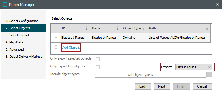 To export using the Excel List of Values format: