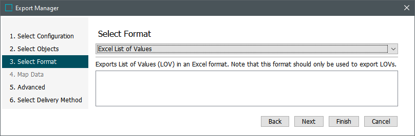 On the 'Select Format' step, select 'Excel List of Values'.
