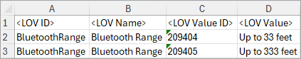 Note: If the exported LOV does not have Value IDs, the <LOV Value ID> column is blank.