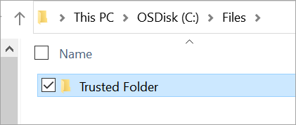 Create a folder that will become the 'trusted location' on the computer where needed, and name it accordingly. In this example, it is called, 'Trusted Folder.'
