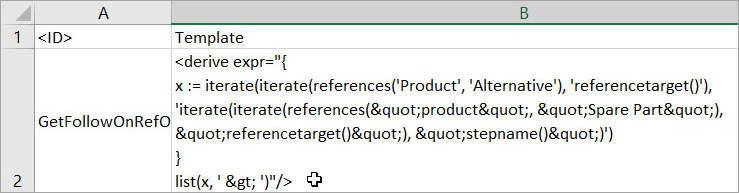 Important: If the pasted text includes an extra set of double quotes surrounding the entire value template, they must be removed for successful import. For example, with this pasted text, the first and last characters must be removed: "<derive expr="FirstRevisionCreateDate()"/>"