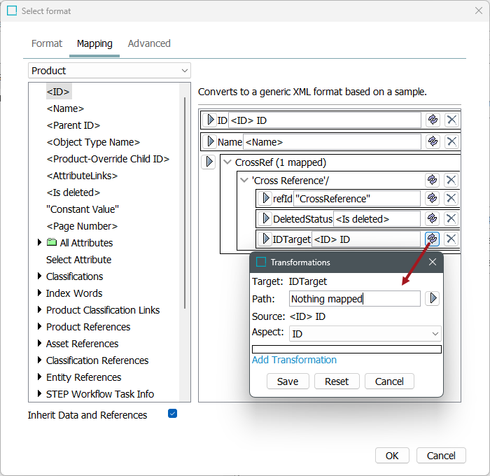 The Reporting Deleted Product References with a Generic XML OIEP topic discusses additional setup for a Generic XML export. Use the following steps to map the Product and monitor for deletion of product references.