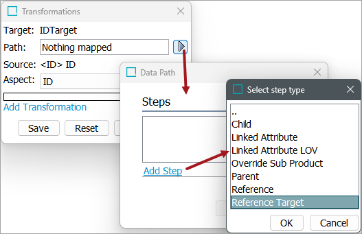 1. Click the Path button, click the Add Step link, and select Reference Target.