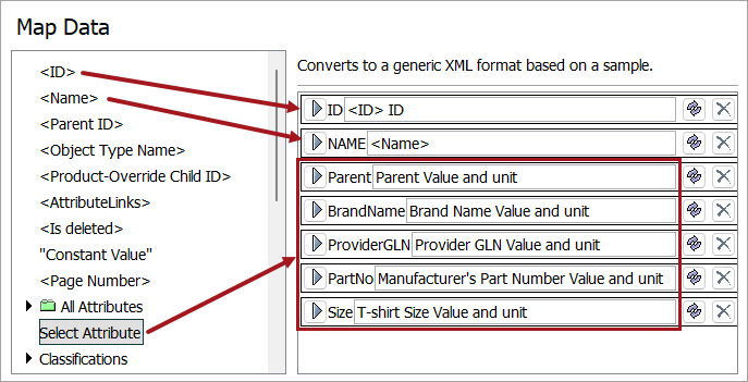 In an outbound Generic XML template, the Generic XML instruction RemoveIfEmpty makes it possible to remove the open and close tags surrounding a value if there is no value for any one of the attributes in the section.