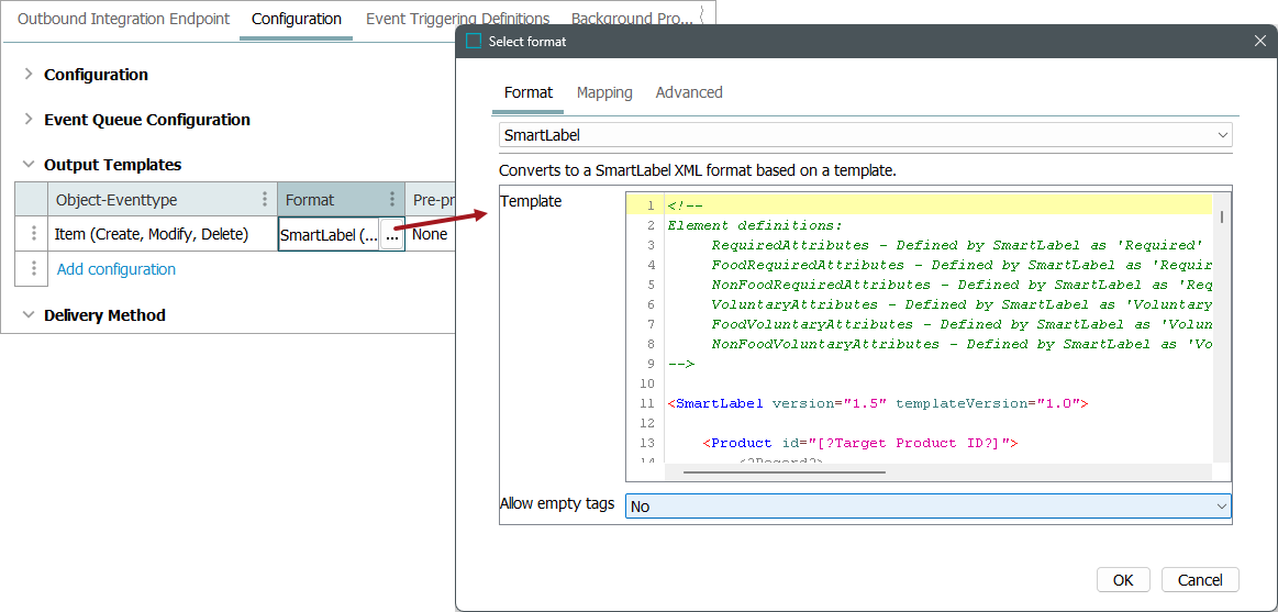 The SmartLabel format is based on Generic XML and includes a pre-defined template for integrators to provide a head start in configuring a SmartLabel™ export solution for both food and non-food product data. For more information, search the web.
