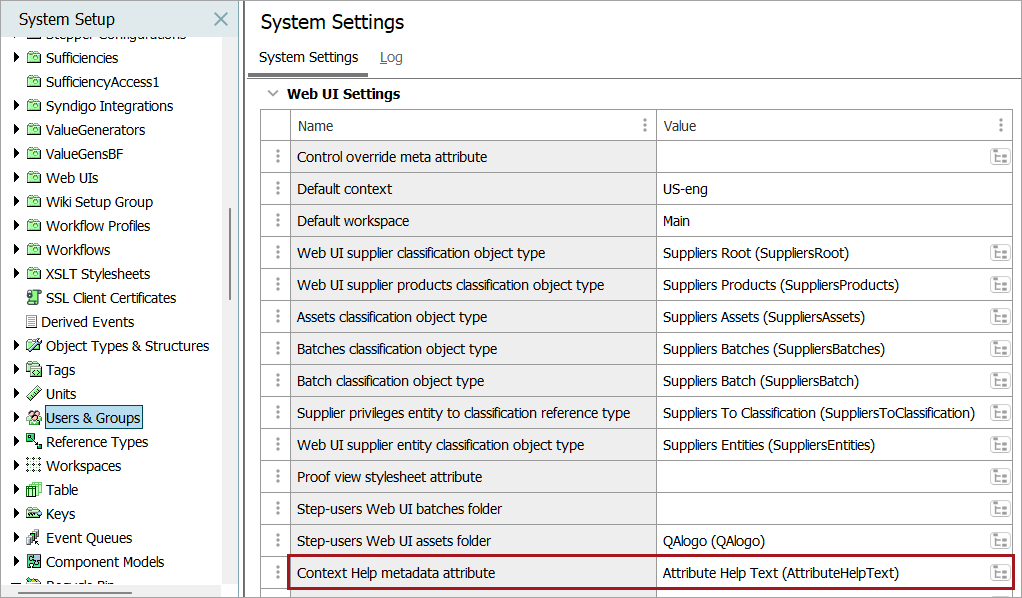 To configure the metadata attribute, navigate to System Setup > User & Groups > Web UI Settings > Context Help Metadata attribute and enter the name of the metadata attribute.