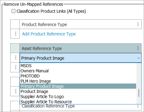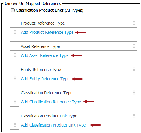 - In the Remove Un-Mapped References parameter, click the relevant add reference type option.