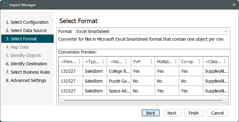 To create a configuration, go through all the steps of the Import Manager wizard. The following section only describes the settings that are specific to Smartsheets.