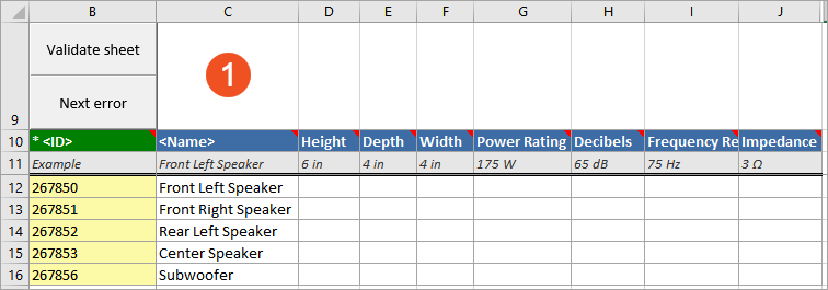 - Have the same data structure (object types and levels) as the actual products that will be onboarded or enriched using the Smartsheet.