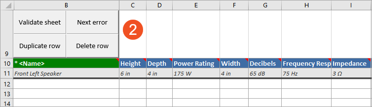 Note: The sample row will be unavailable if the user does not have the permissions to view the referenced products.