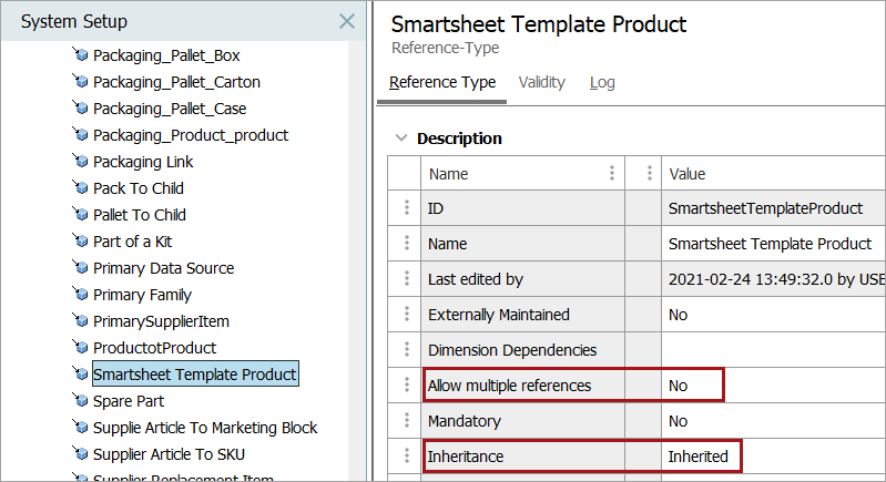 The Smartsheet Template Product reference type is automatically configured as follows: