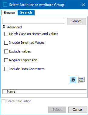 Select Attribute allows you to browse or search for an attribute or attribute group, and also Force Calculation when the attribute is calculated.