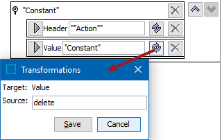 - Use the transformation button to update the Value field, if necessary. You can also use the transformation to remove the extra set of double quotes displayed by default.