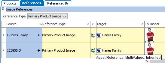 The 'Primary Product Image' reference value is also being inherited to the child level in the hierarchy.