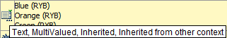 The Color attribute has a local value on the family object, and the values are inherited to the same attribute of the child object. The following shows a view created to show the values available for both the parent and the child.