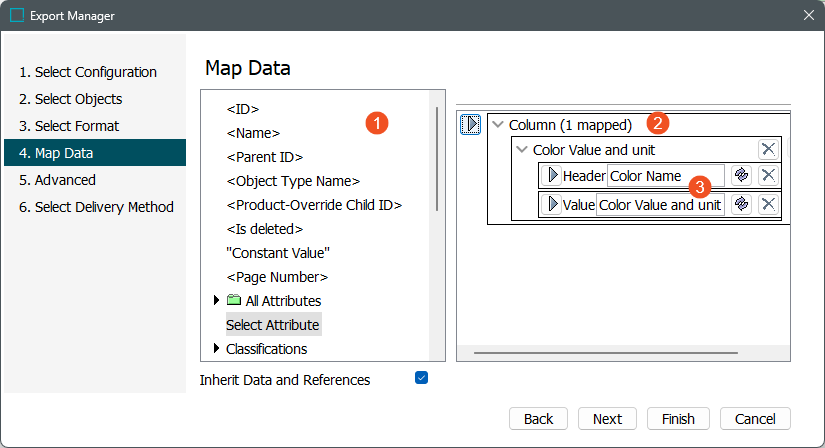 The Map Data step is displayed in the Export Manager wizard based on the selected format.