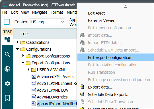 - Select an export configuration, right-click and select Edit export configuration option.