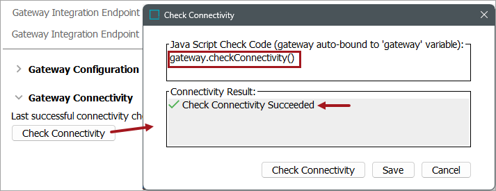• On the Gateway Connectivity section, click the Check Connectivity button.